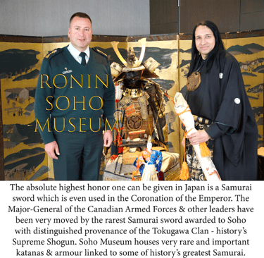 Soho has been described by the Canadian media as the only North American ever to be knighted as a Samurai -- and he has spent more resources and finances promoting Bushido and the Samurai legacy than any other private citizen in the world. Soho has made the most comprehensive film ever made on the spiritual traditions of the Samurai -- and is launching the world's top private museum of Samurai artifacts and treasures. Soho has also brought the Samurai to the world's top forums including the US Congress, Canadian Government, Olympics, Panam Games, Simon Wiesenthal Center and FreeMasons Organization and is the most popular person on X promoting Bushido culture and civlization both in Japan as well as worldwide. This is a direct modern day manifestation of the agreement between Prince Shotoku and Daruma/Bodhidharma